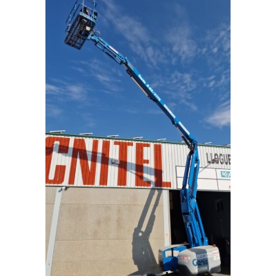 La brazo articulado Genie Z-60/37 FE es una solución premium para trabajos en altura exigentes que requieren maniobrabilidad, alcance y eficiencia. Esta máquina está diseñada para ofrecer acceso “up, out & over” en entornos de construcción, mantenimiento industrial, instalaciones técnicas y exterior.